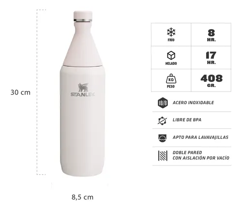 La botella Stanley All Day Slim es ideal para quienes buscan mantener sus bebidas a la temperatura perfecta durante todo el día, con un diseño elegante y funcional. Hecha con acero inoxidable de alta calidad, esta botella es resistente, duradera y completamente libre de BPA, lo que la convierte en una opción segura y ecológica para tu rutina diaria.