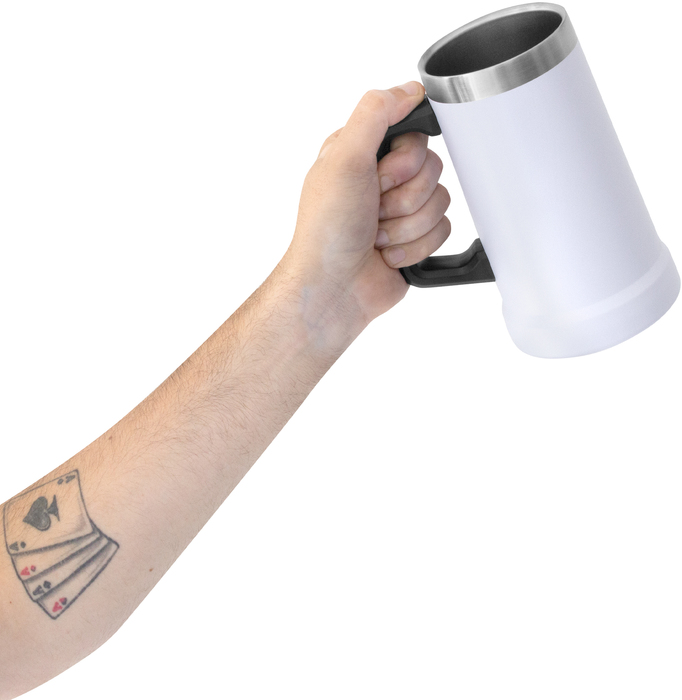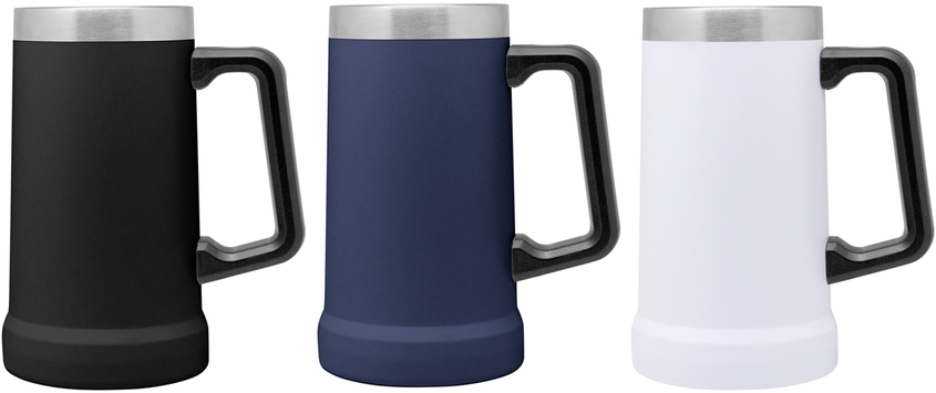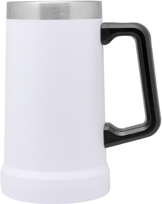 Jarro cervecero doble pared, sellado al vacío. Interior en acero 304 y exterior en acero 201. Mango Plástico. Pintura Powder coat (pintura más duradera y resistente a la corrosión y el paso del tiempo).