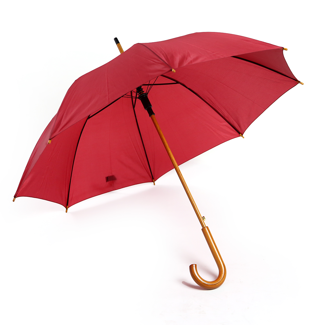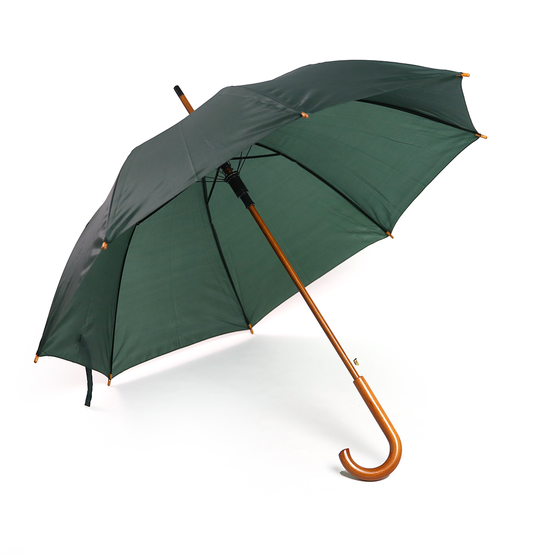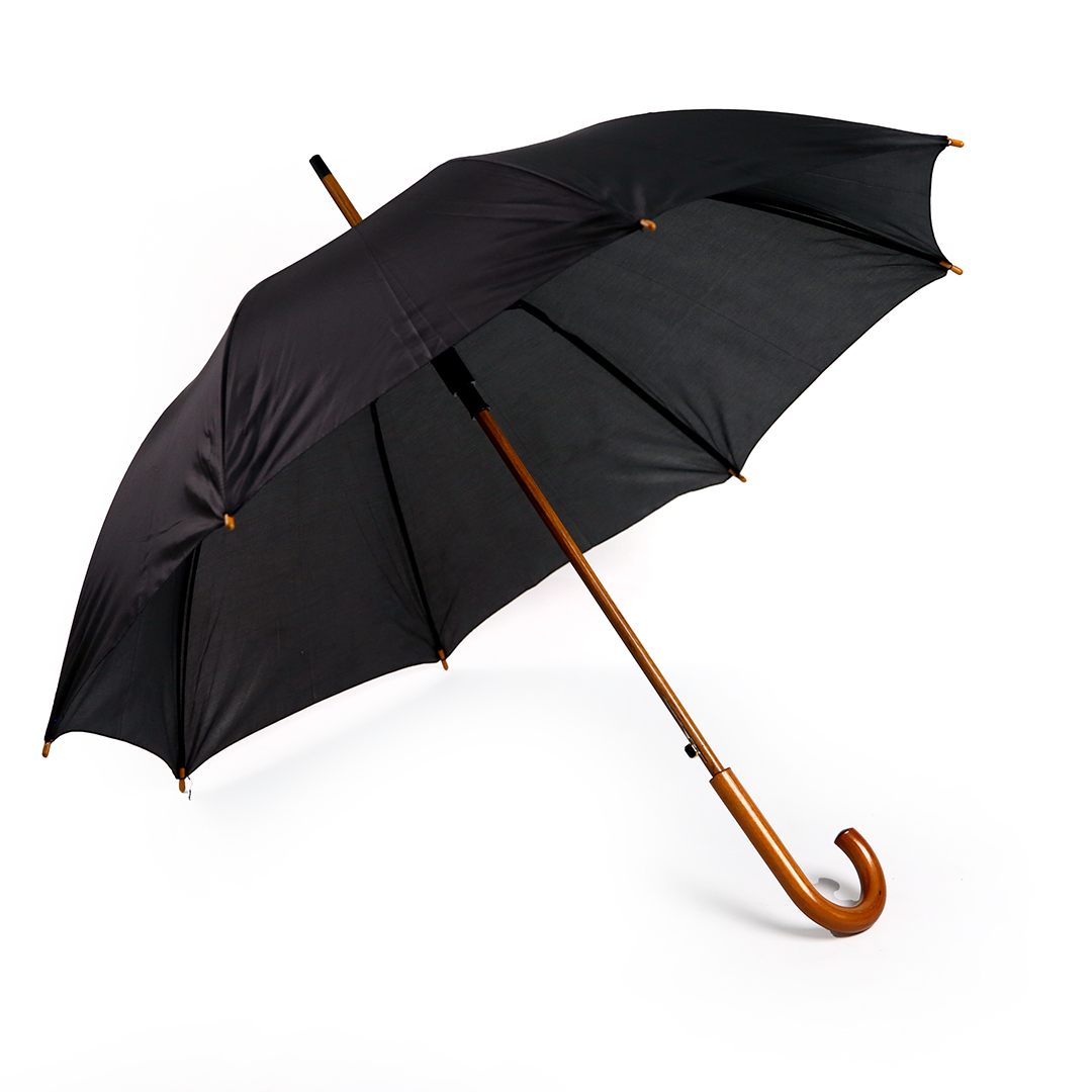 Paraguas con mango curvo de madera