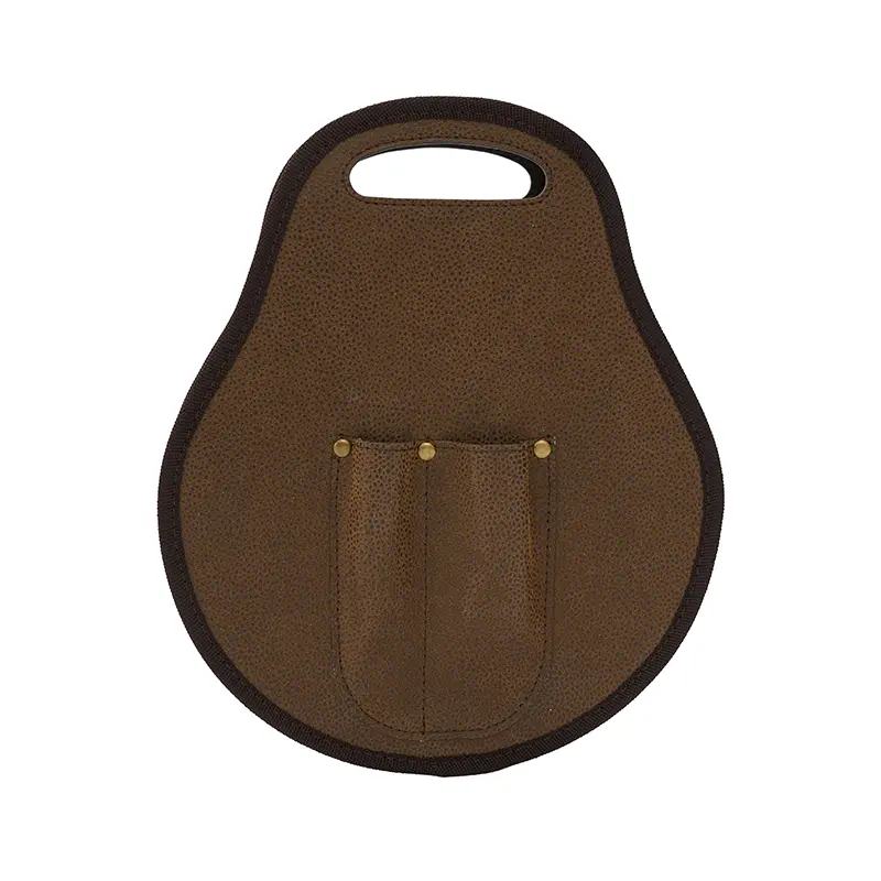 todo guardado en una bolsa de cuero con cierre tipo estríbo. Es ideal para
