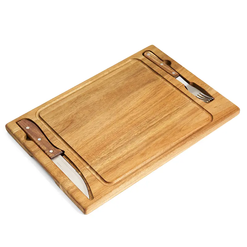 Set de asado con tabla y utensilios. Hecho de madera de acacia y acero
